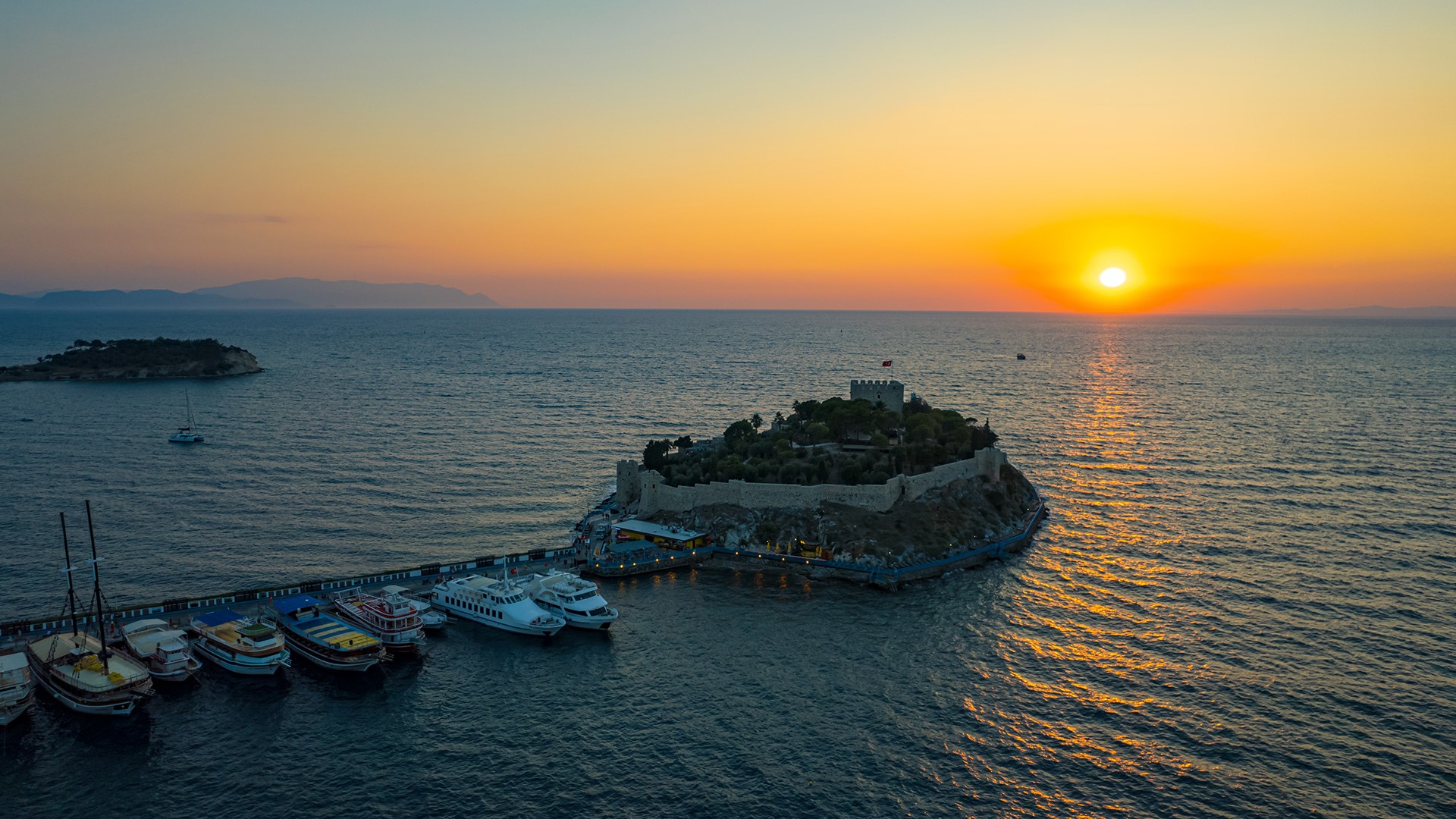 Before photographing this unique shot of this sunset view, you can explore this peaceful holiday destination and its natural wonders. Located in the south of Güvercinada, Cape Yılancı is a great route for summer lovers with its turquoise waters and calm beach. Enjoy the warm sun and cool waters while resting on the golden sands.